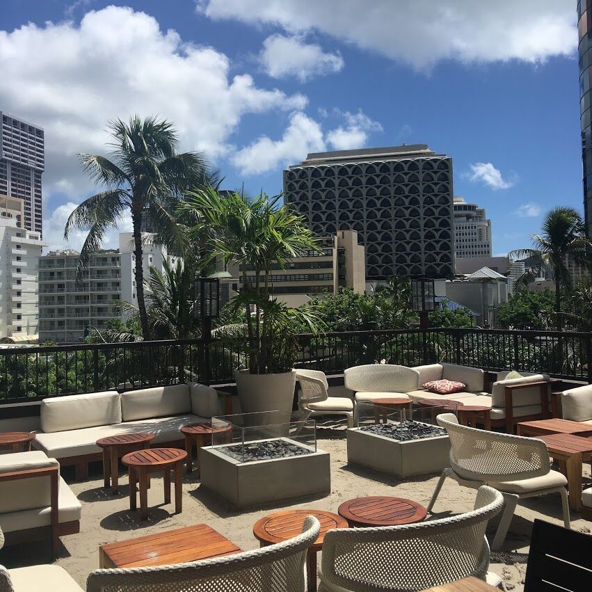 下がサンドになっているハワイらしい、テラス席にしたかったのですが、昼はダメですね。暑すぎました。
