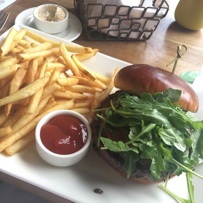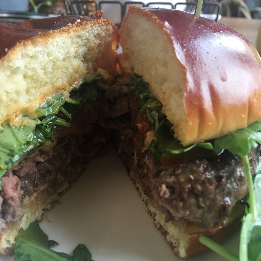 全てのディッシュが、大きい。バーガーがジューシーでボリューミー。ピリ辛のサルサがビーフにマッチしています。バンズも外がカリっとして中がしっとり。