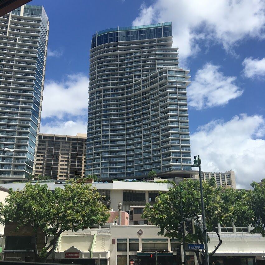 お席から、リッツカールトンのツインビルがみえます。ワイキキは高層ビルが増えて、空が見えなくなる勢いですね。